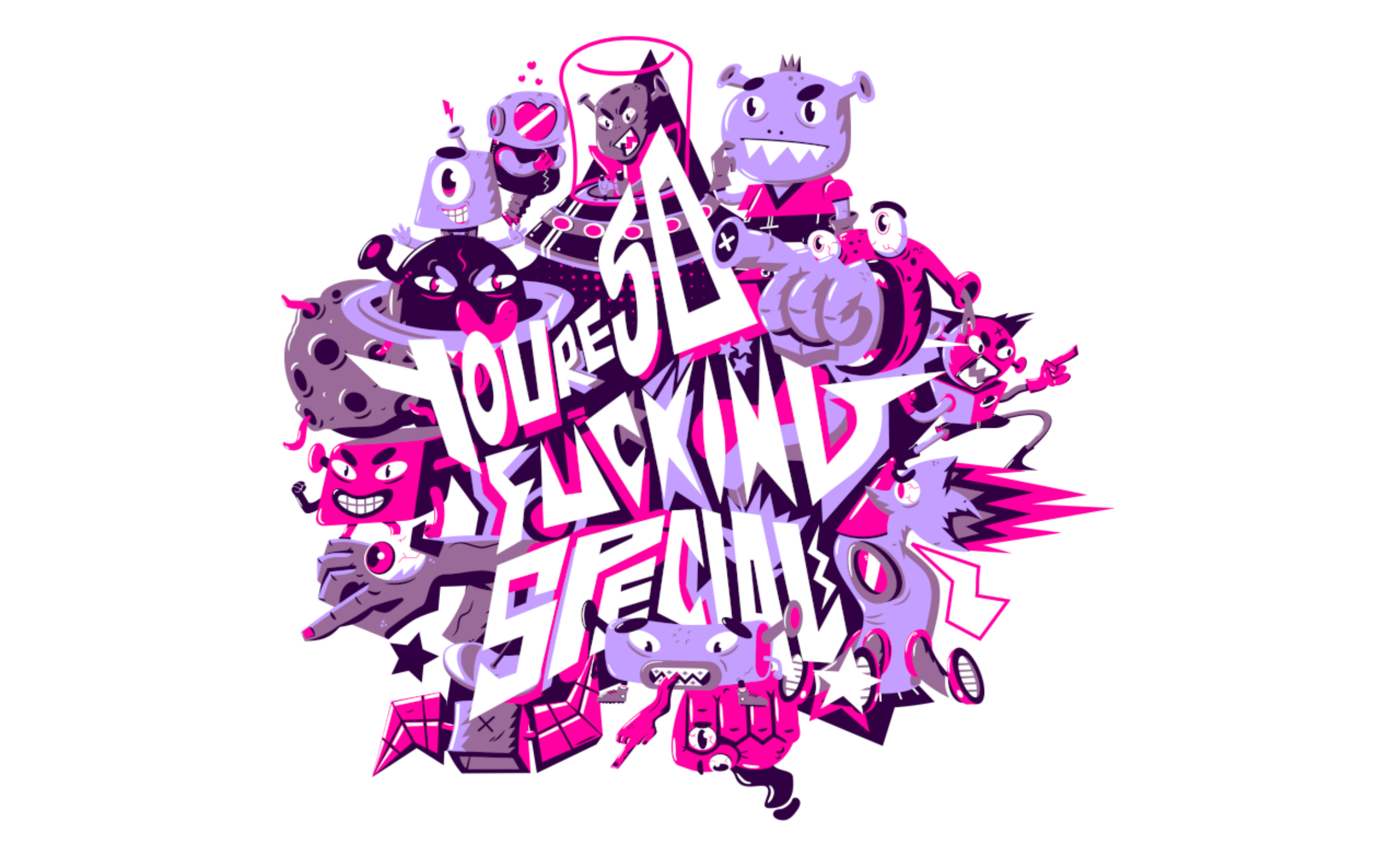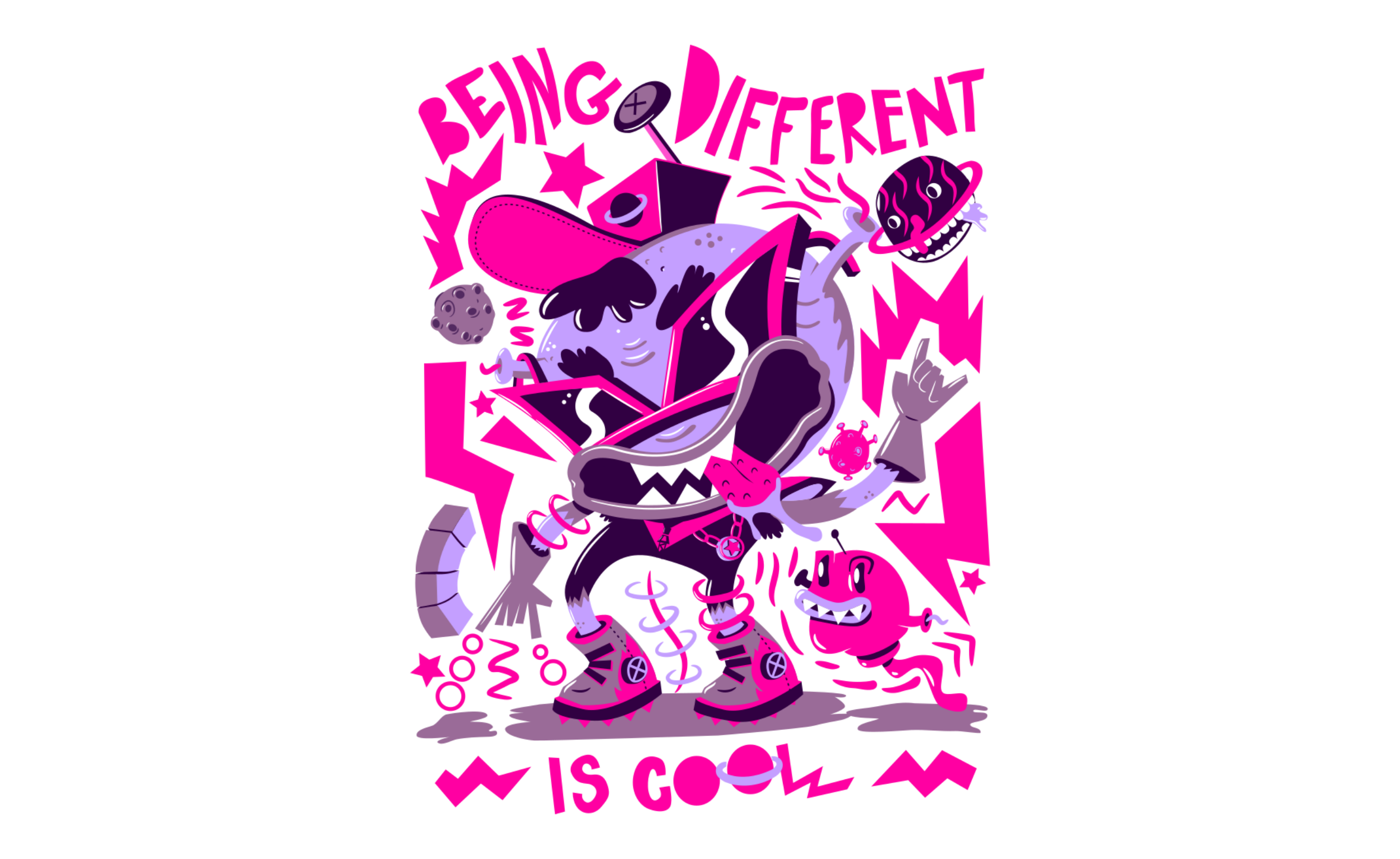 I created this project to graphically explore the importance of each person and their differences, through flat illustrations, reduced colors and the theme of the universe.
